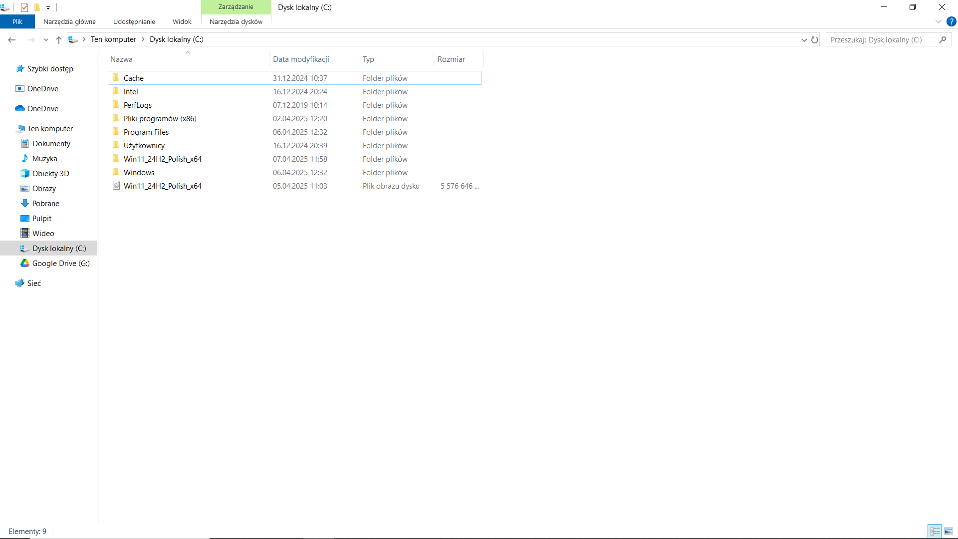 Wygląd dysku lokalnego C po wypakowaniu obrazu ISO.