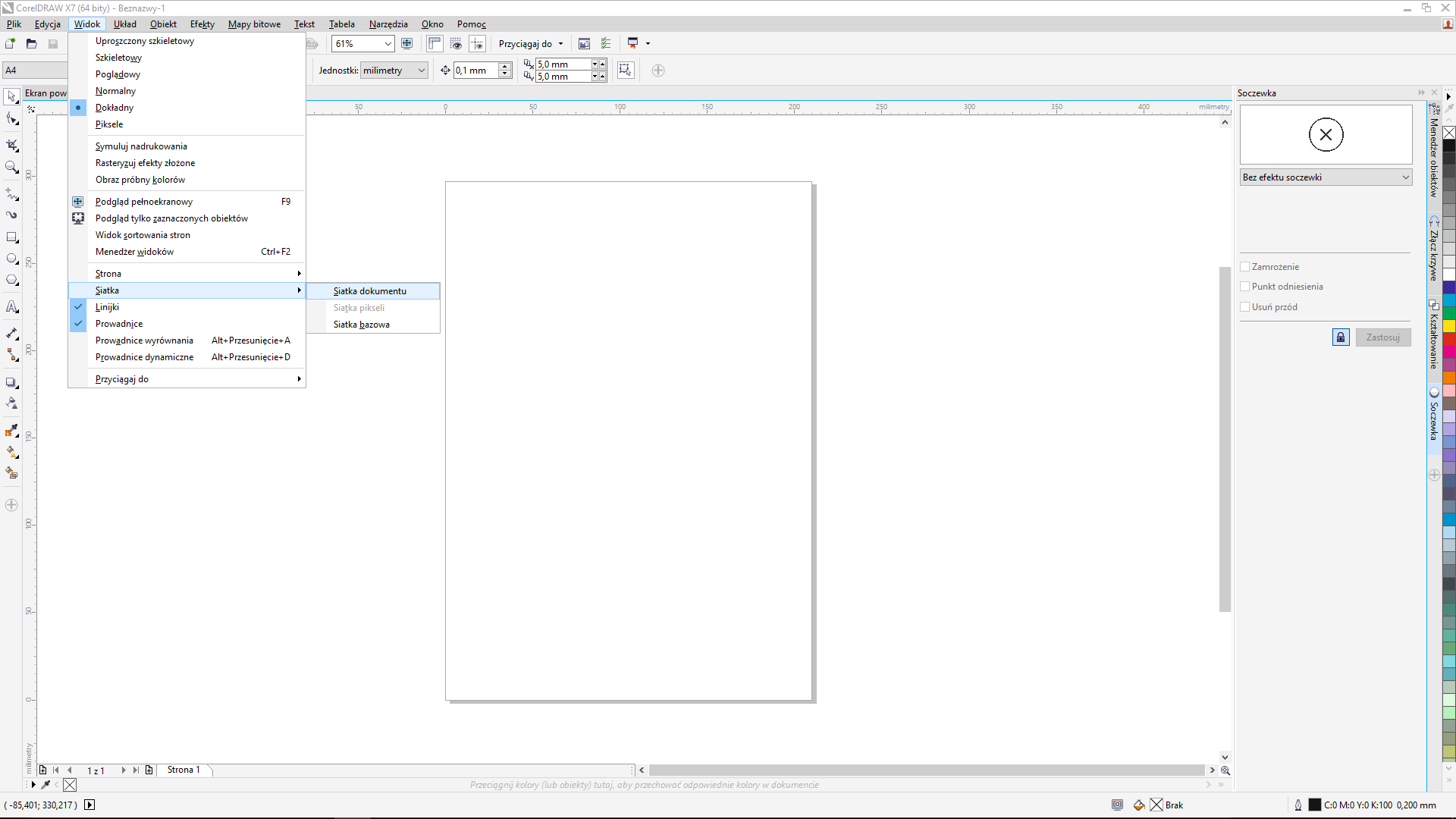 W celu ułatwienia sobie dalszej pracy włączamy linie siatki Widok/Siatka/Siatka dokumentu.