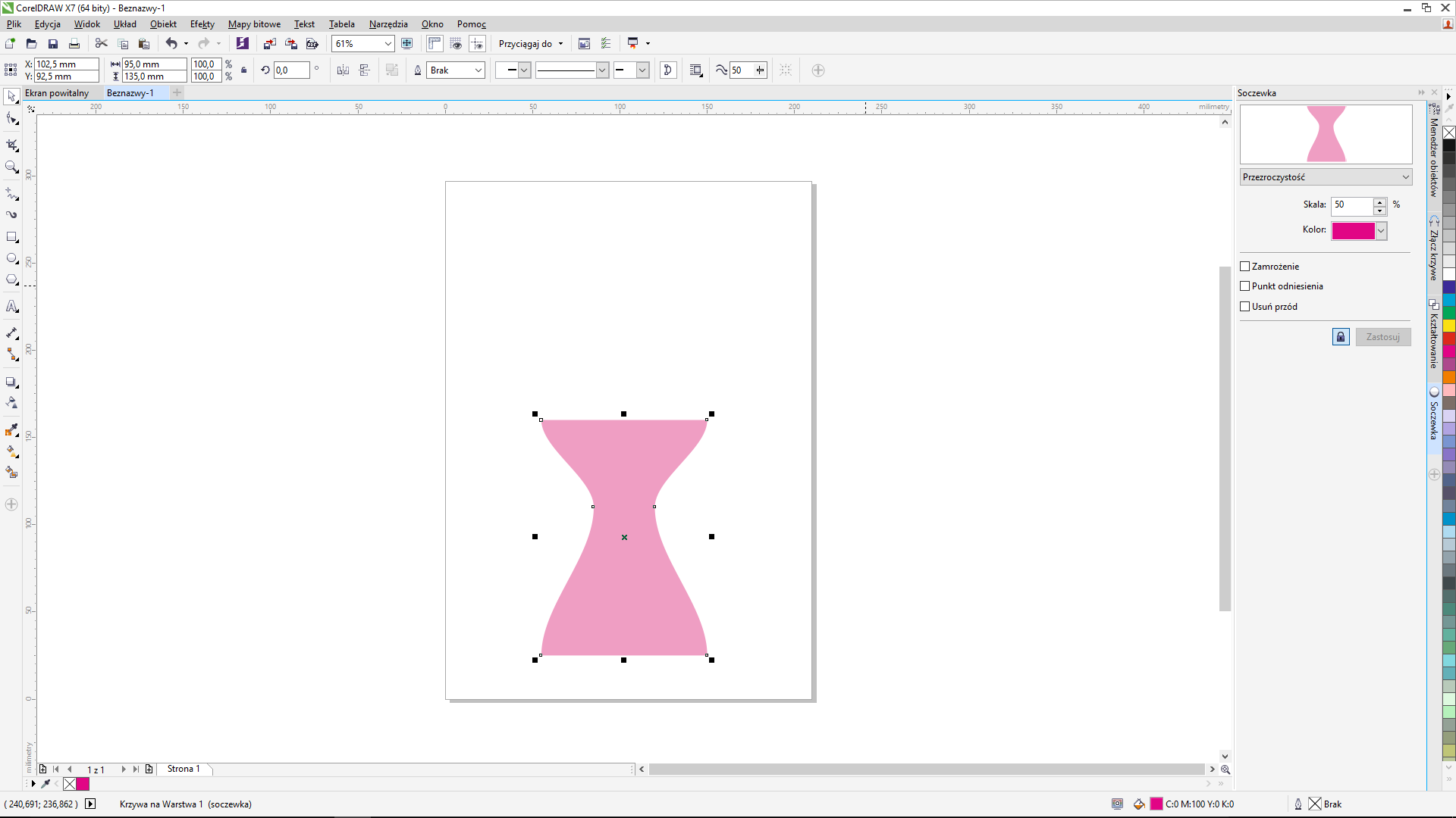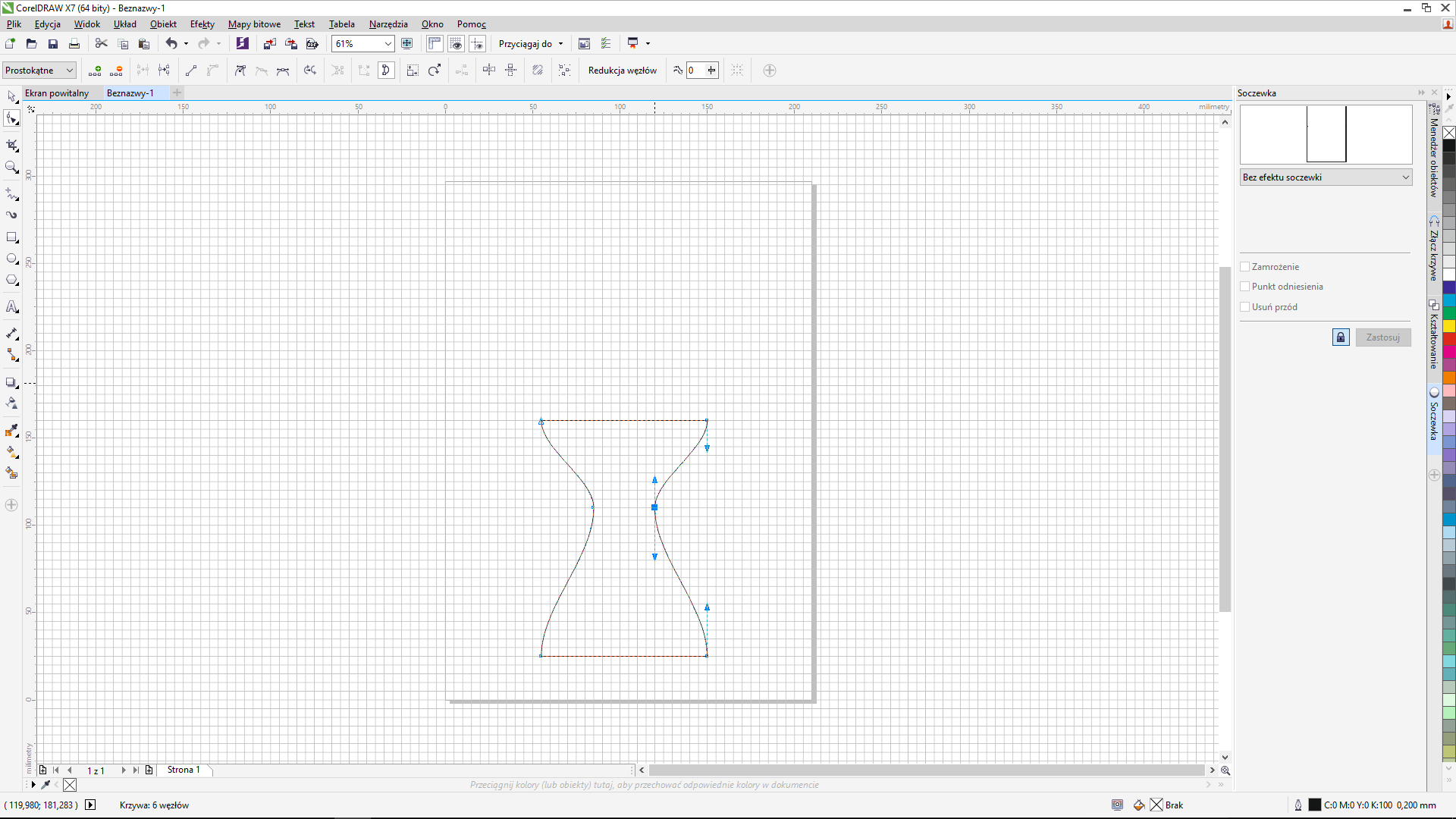 Wyłączamy linie siatki Widok/Siatka/Siatka dokumentu. oraz przyciąganie do siatki Widok/Przyciągaj do/Siatka dokumentu (ctrl+Y). Likwidujemy obrys naszego wazonu i wypełniamy go dowolnym kolorem.