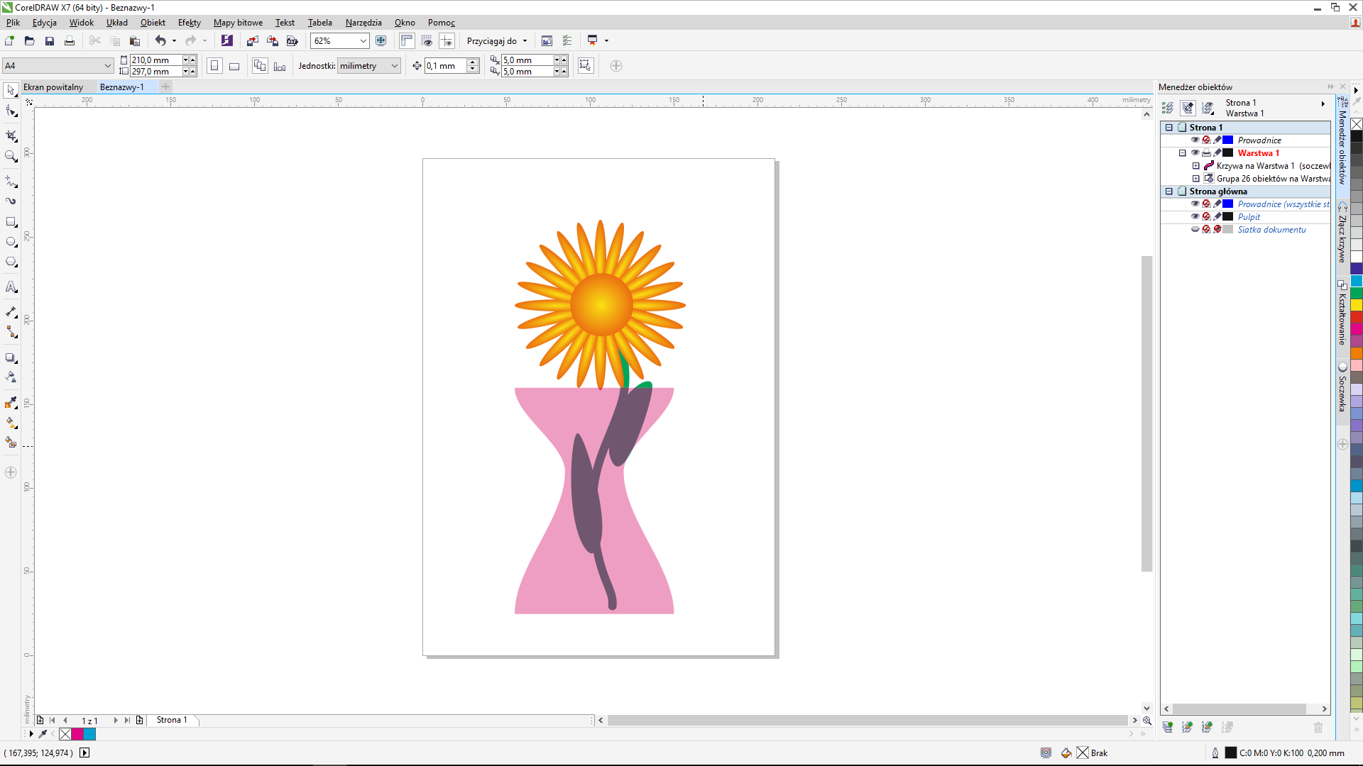 Ostatnim krokiem może być wykorzystanie kwiatka z poprzedniego tutoriala i umieszczenie go w wazonie. W zależności od potrzeb modyfikujemy jego wielkość oraz pamiętamy o właściwej kolejności obiektów na warstwie.
